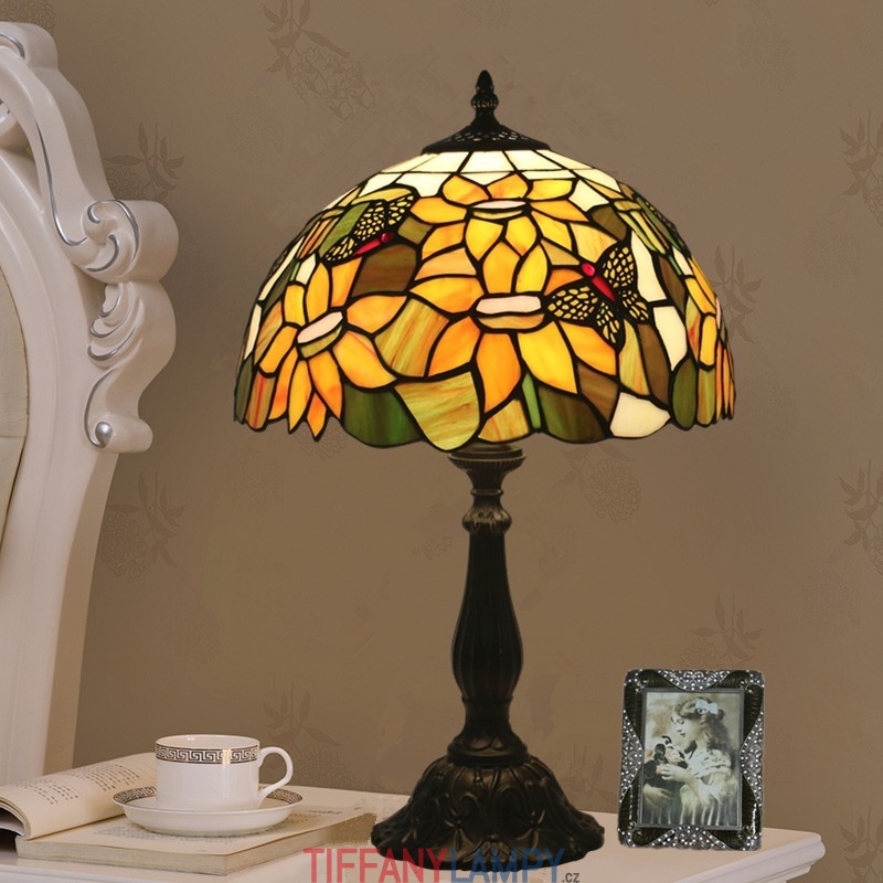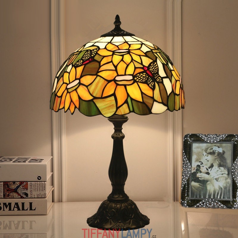 30 cm Evropská vitrážová stolní lampa ve stylu motýla Slunečnice ve stylu Tiffany